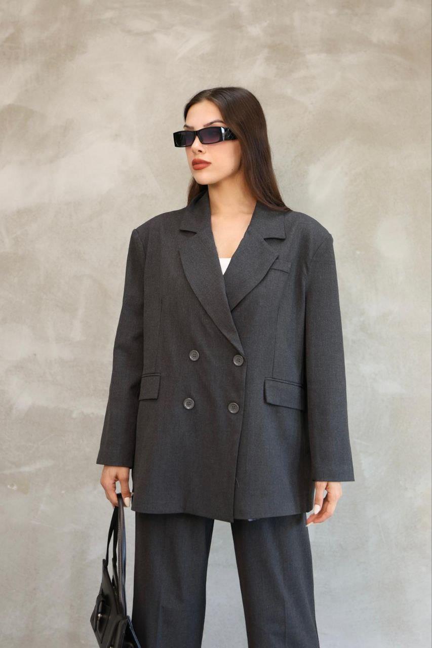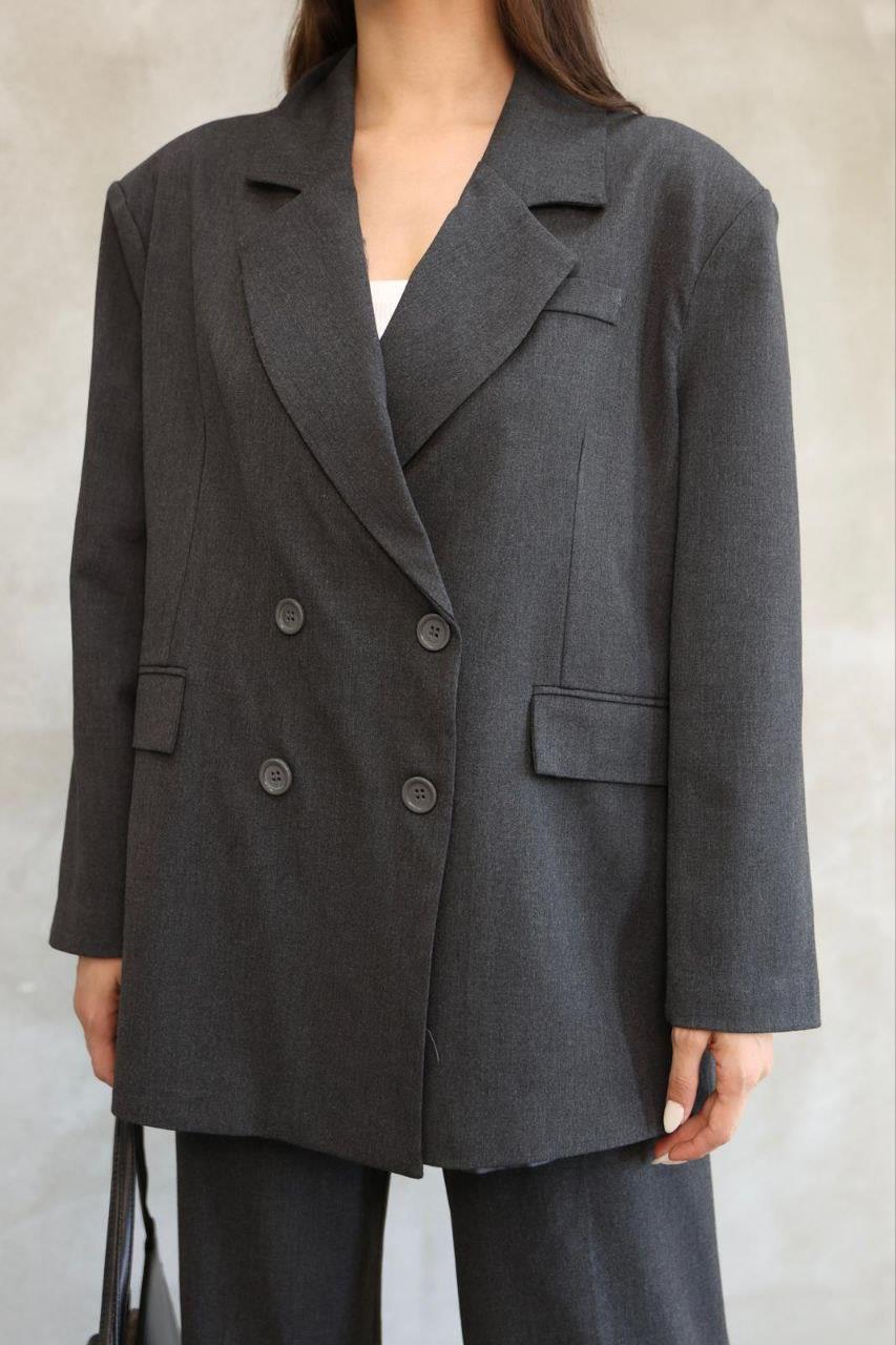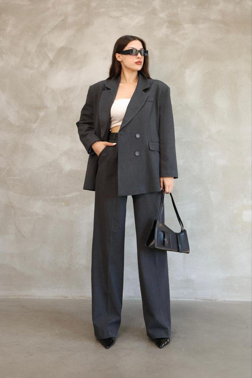 Kadın Antrasit Premium Oversize Blazer Ceket Palazzo Pantolon Takım